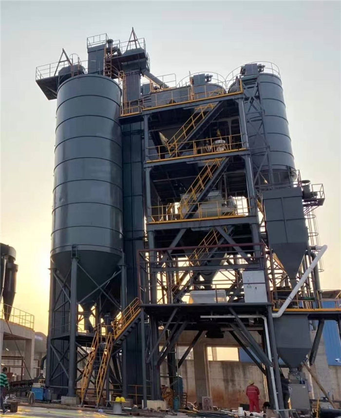 三、在配料方式上,該套設備摒棄傳統地面配料模式,采用塔式布局頂部配料模式,大幅減少物料配比輸送時間,提高生產效率,降低材料成本。