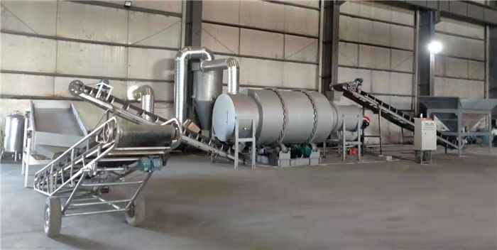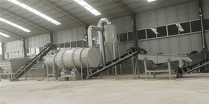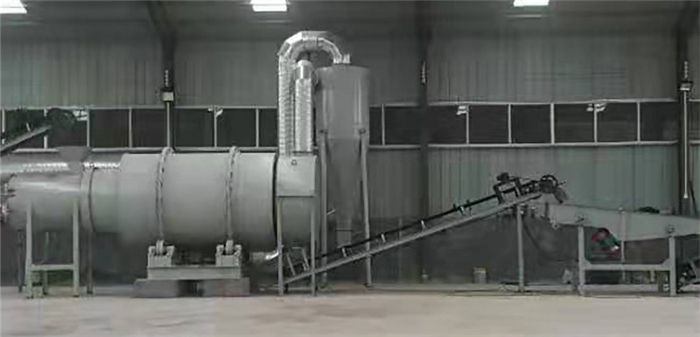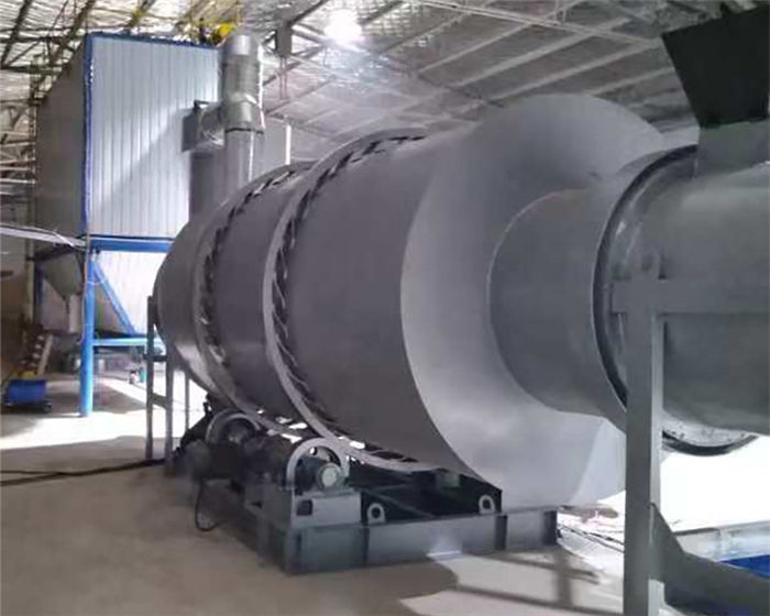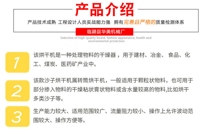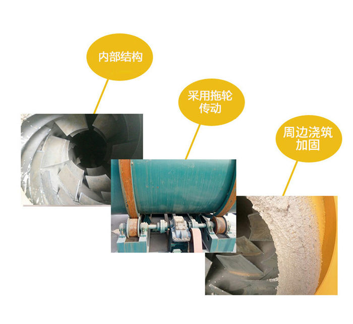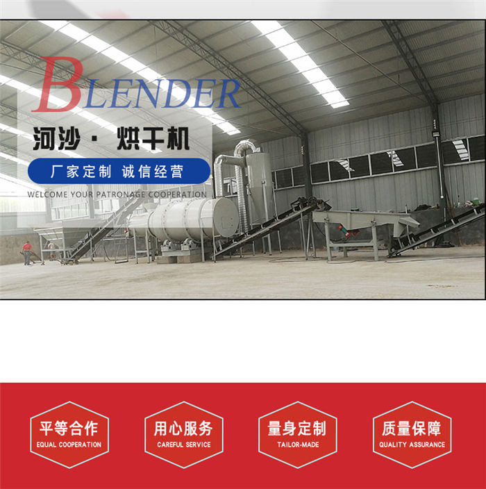 該烘干機(jī)工作原理:物料由供料裝置進(jìn)入回轉(zhuǎn)滾筒的內(nèi)層,實(shí)現(xiàn)順流烘干,物料在內(nèi)層的抄板下不斷抄起、散落呈螺旋行進(jìn)式實(shí)現(xiàn)熱交換,物料移動(dòng)至內(nèi)層的另一端進(jìn)入中層,進(jìn)行逆流烘干,物料在中層不斷地被反復(fù)揚(yáng)進(jìn),呈進(jìn)兩步退一步的行進(jìn)方式,物料在中層既吸收內(nèi)層滾筒散發(fā)的熱量,又吸收中層滾筒的熱量,同時(shí)又延長(zhǎng)了干燥時(shí)間,物料在此達(dá)到干燥狀態(tài)。物料行至中層另一端而落入外層,物料在外層滾筒內(nèi)呈矩形多回路方式行進(jìn),達(dá)到干燥效果的物料在熱風(fēng)作用下行進(jìn)排出滾筒,沒(méi)有達(dá)到干燥效果的濕物料因自重而不能快速行進(jìn),物料在此矩形抄板內(nèi)進(jìn)行充分干燥,由此完成干燥目的。